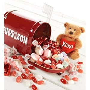 In elementary school, Valentines Day meant that everyone in classeven the boysgot a card. I would pore over each card, choosing just the right message. (You didnt want, Be My QT Pie to fall into the wrong hands!) Now, getting your message across is much easier with our personalized red metal Valentine Mailbox. Includes conversation hearts, red foil wrapped chocolate hearts, Valentine Jelly Belly beans and a sweet faced plush monkey. gifts for valentines, valentines gift ideas, valentines gifts, valentines gifts for men, valentines ideas, valentine's day baskets, valentines day popcorn, valentines day gift, valentines popcorn, valentines gift, valentines gifts, popcorn, thepopcornfactory, popcornfactory