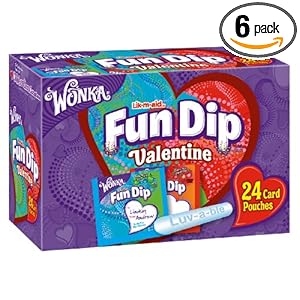 Wonka Lik-M-Aid Fun Dip Valentines Candy and Card Kit, 12-Ounce Bag (Pack of 6) is a fun dip candy with card packets that carry special valentine messages on it.