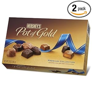 Well, you should not doubt Hershey's Pot of Gold Assorted Milk and Dark Chocolate Premium Collection, 10-Ounce Boxes (Pack of 2), So long as the values are perfect, click on the buy button right now. Let amazon delivered it to you.